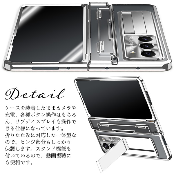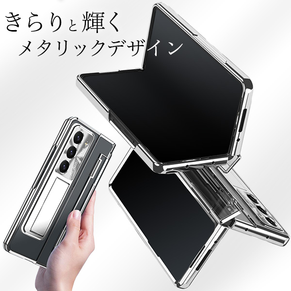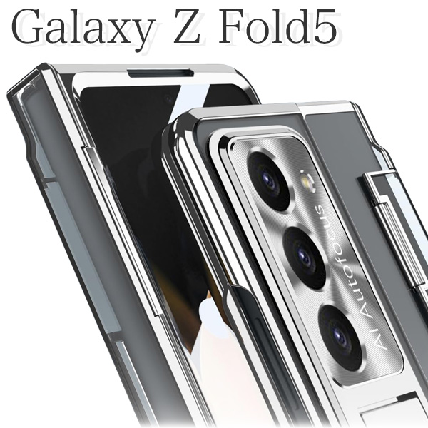 <スマホケース>Galaxy Z Fold5 SC-55D/SCG22用ヒンジ保護付きメタリックバンパーハードクリアケース
