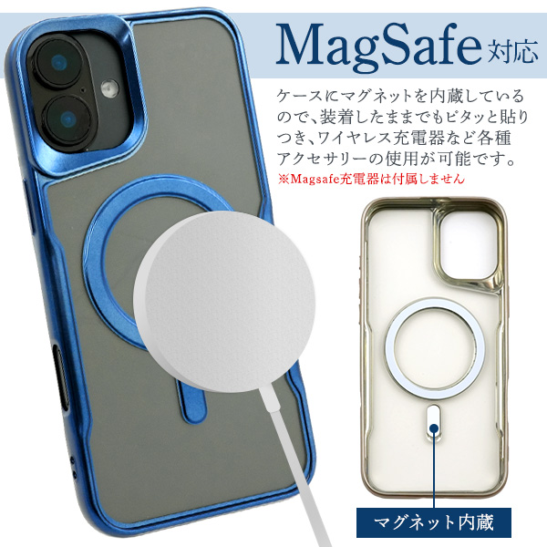 <スマホケース>iPhone 16 Plus用MagSafe対応マットメタリックバンパーソフトクリアケース