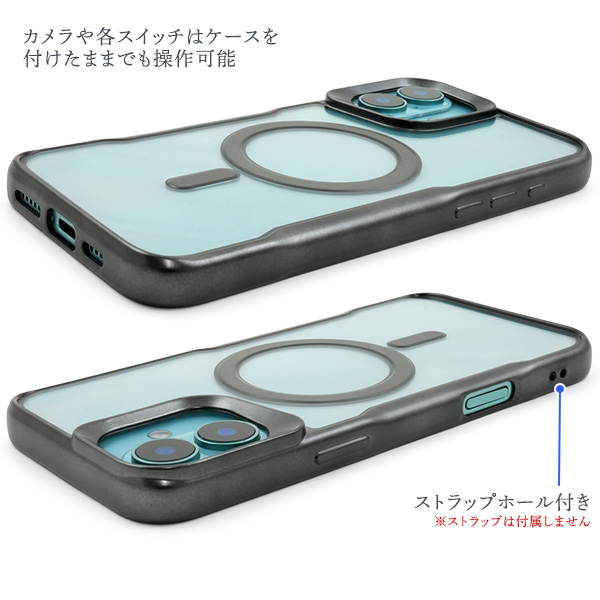 | 注意事項 | ※画像の色調はご使用のモニターの機種や設定により実際の商品と異なる場合があります。 ※ライセンス商品ではありません。 ※スマートフォン、MagSafe充電器、その他撮影用小物等は付属しません。 ※本製品は強い衝撃からスマートフォンを保護することは出来ません。 ※広角モードで撮影すると、ケースが映り込む場合があります。 ※入荷のタイミングで、商品の形状が若干変更になることがあります。予めご了承ください。 |