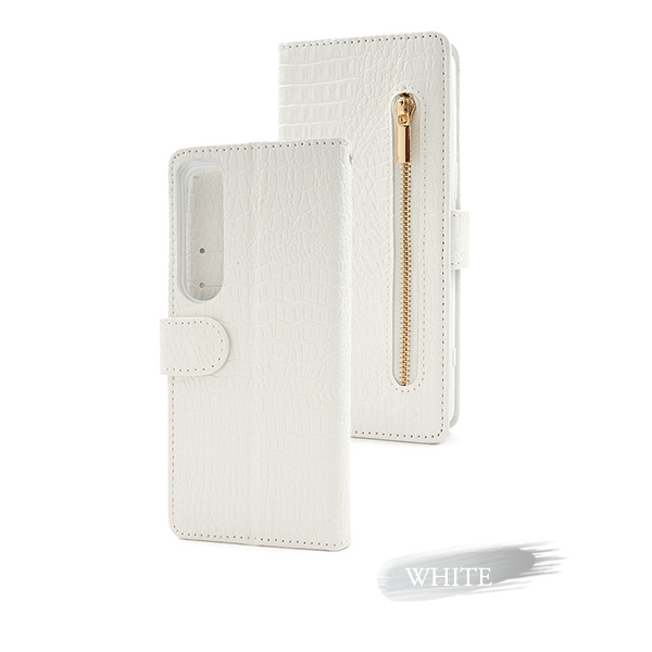 <スマホケース>Xperia 1 VII SO-51F/SOG15/A501SO/XQ-FS44用クロコダイルレザーデザイン手帳型ケース