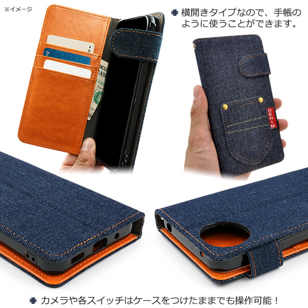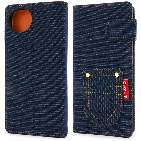 デニムデザインの手帳型ケース。