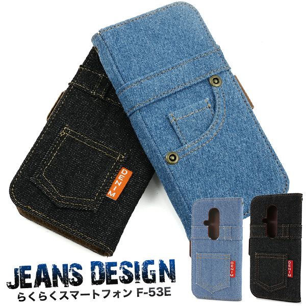 らくらくスマートフォンF-53E用ジーンズデザイン手帳型ケース(デニムデザイン手帳型ケース)
