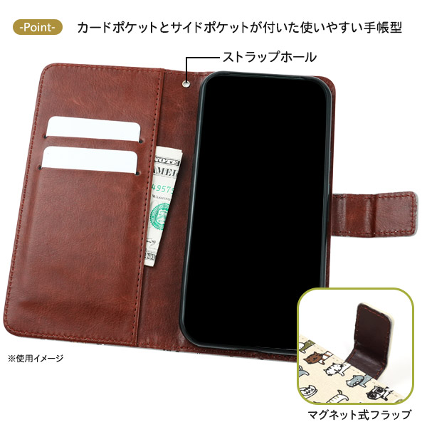 個性的な猫たちに癒される、猫好きさんにおすすめの手帳型ケースです。