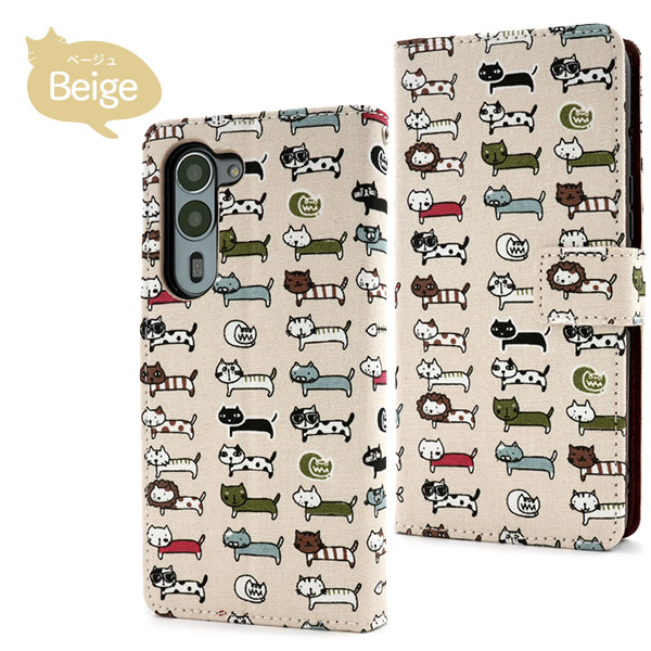 <スマホケース>arrows We2 Plus F-51E用\にゃー!/ マルチファッション猫 手帳型ケース