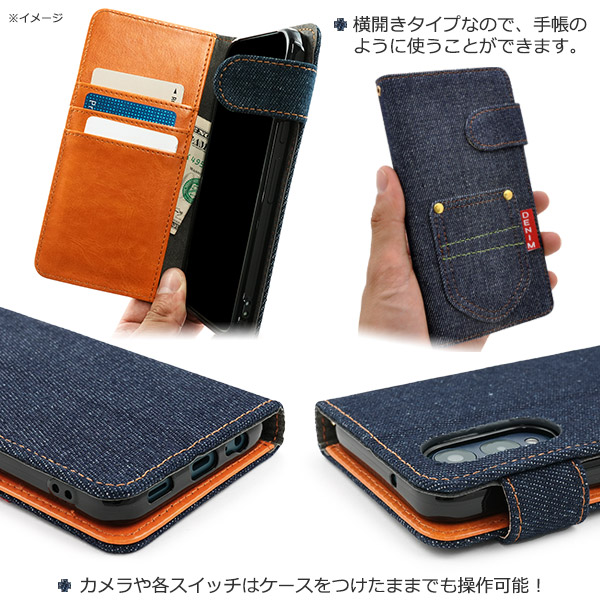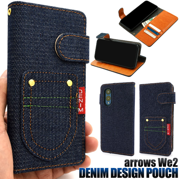 <スマホケース>arrows We2 F-52E/FCG02用ポケットデニムデザイン手帳型ケース